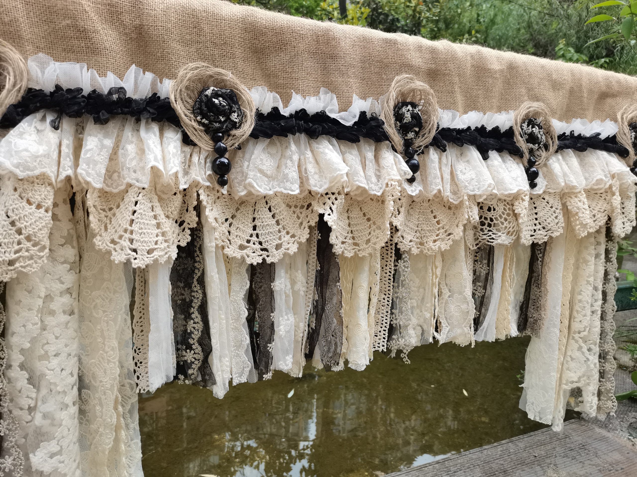 Pastoral Romantic Kitchen Curtains Burlap Decorative Curtains Shabby Burlap Curtains Pastoral Curtains Wedding Wreaths