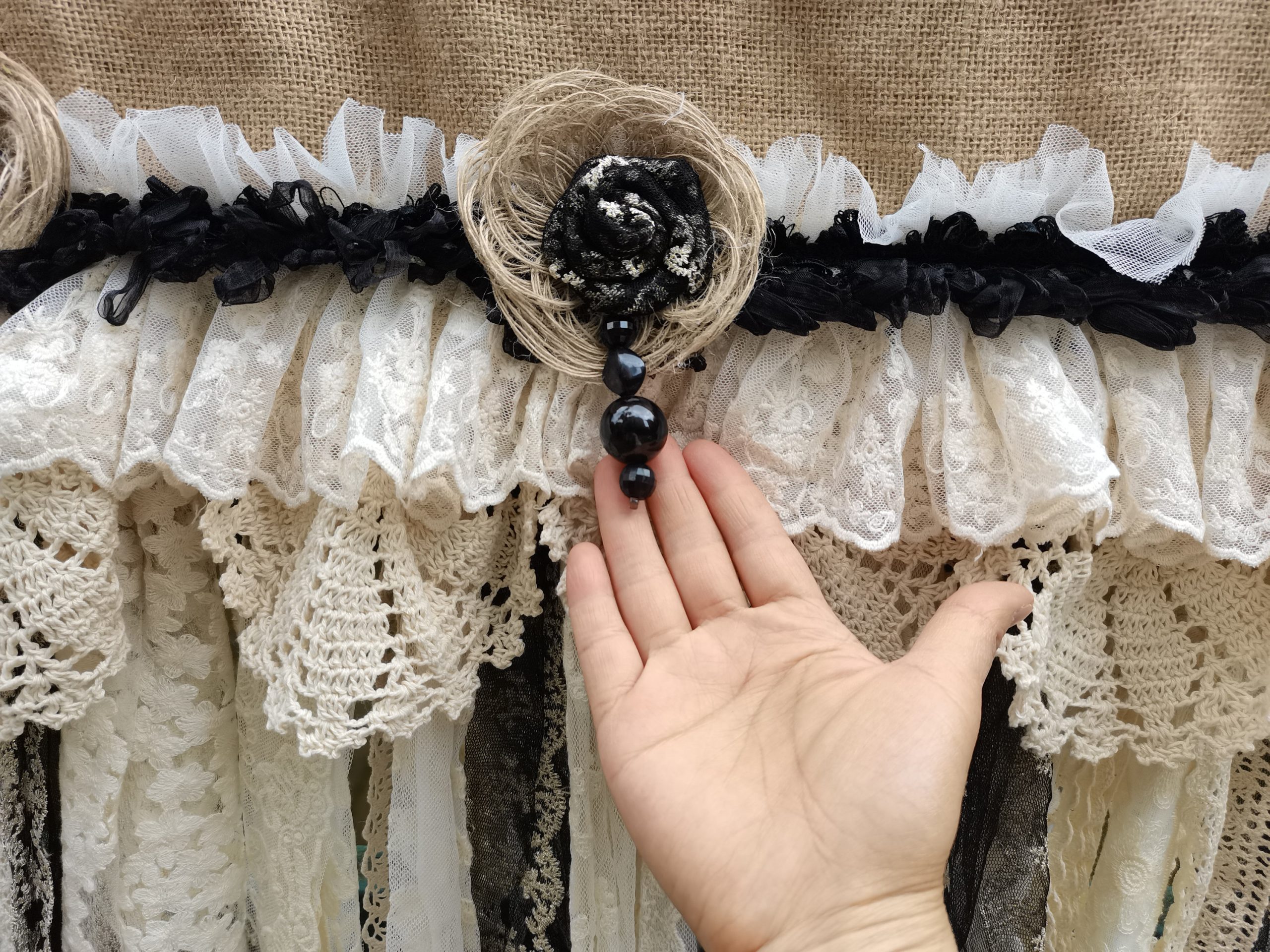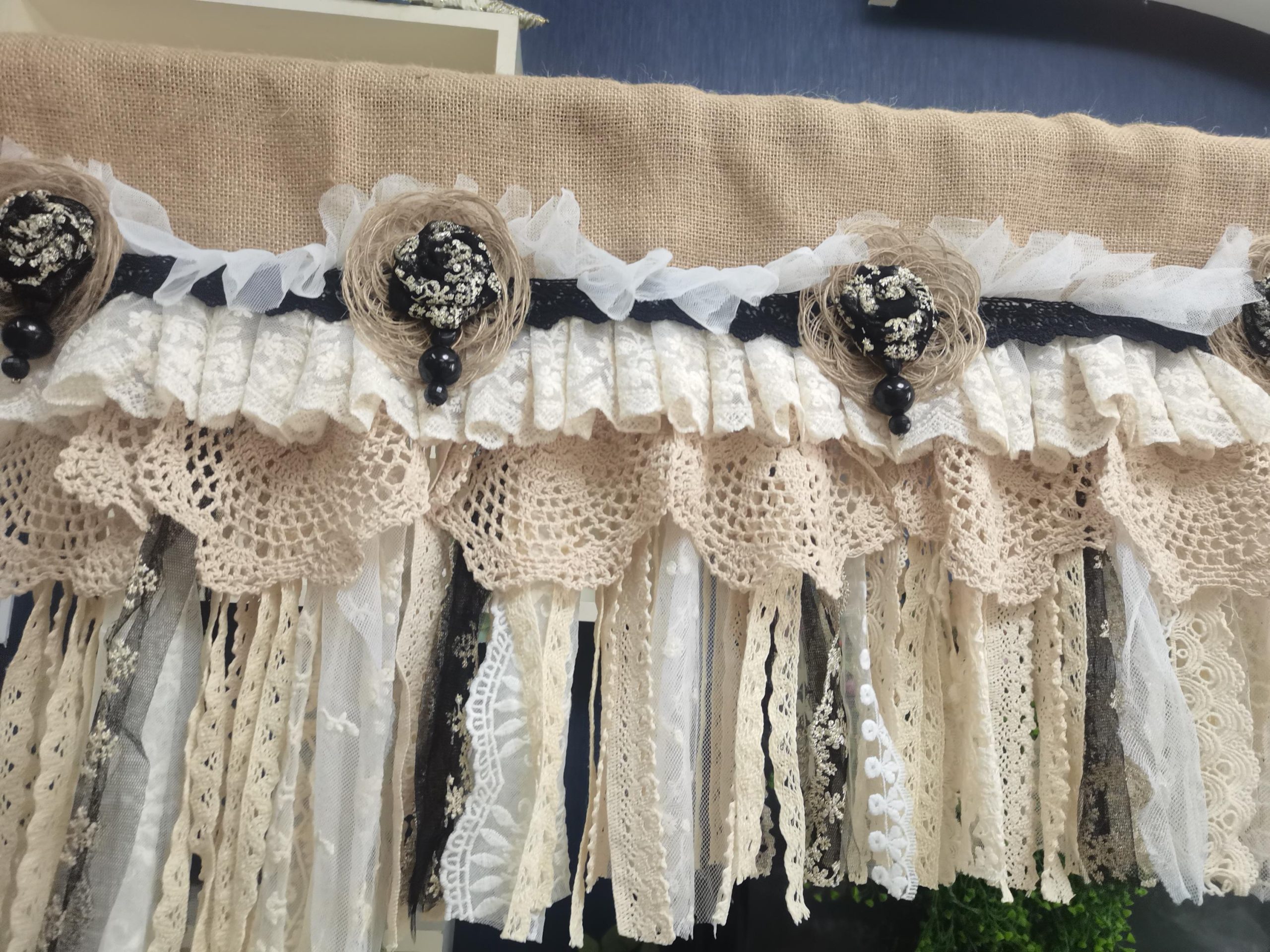 Pastoral Romantic Kitchen Curtains Burlap Decorative Curtains Shabby Burlap Curtains Pastoral Curtains Wedding Wreaths Unique, Distinctive, and Charming! Size: Approximately 40 inches wide and approximately 21 inches to 17 inches long (as shown)