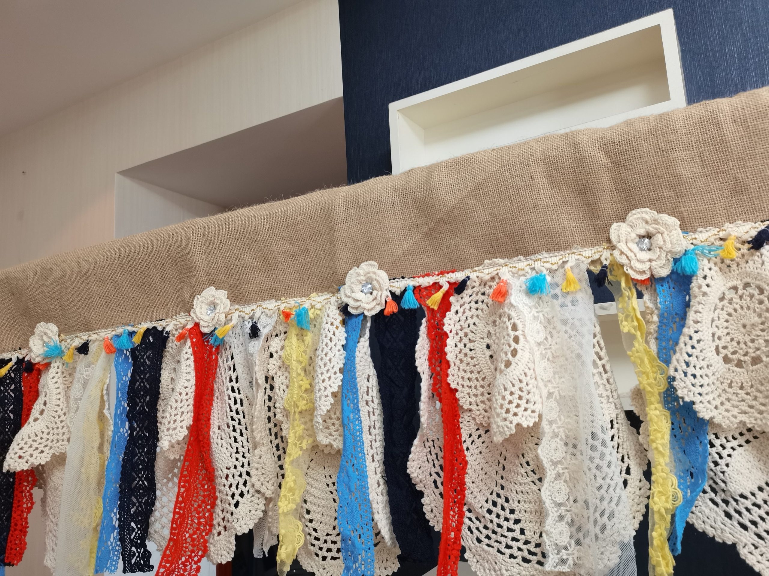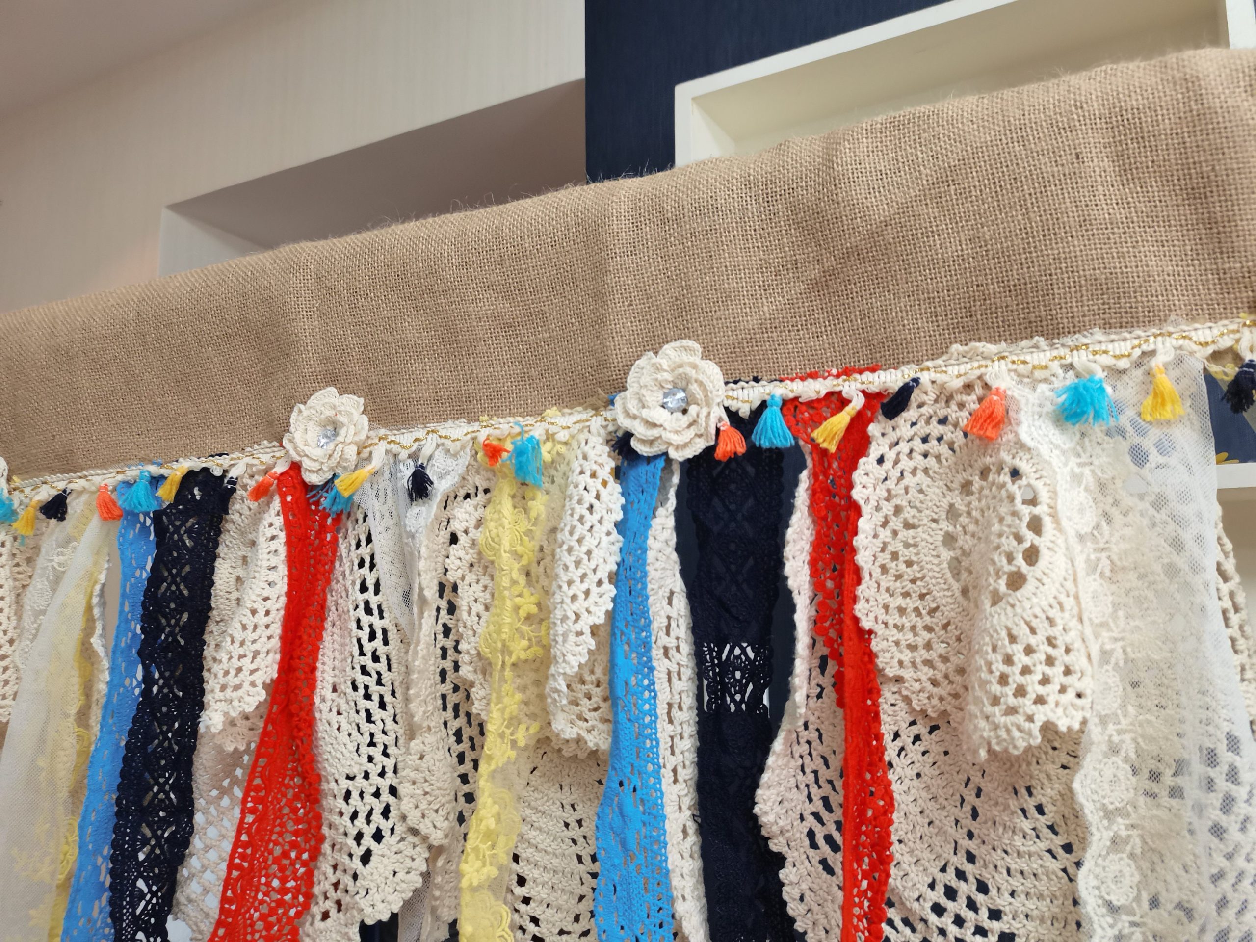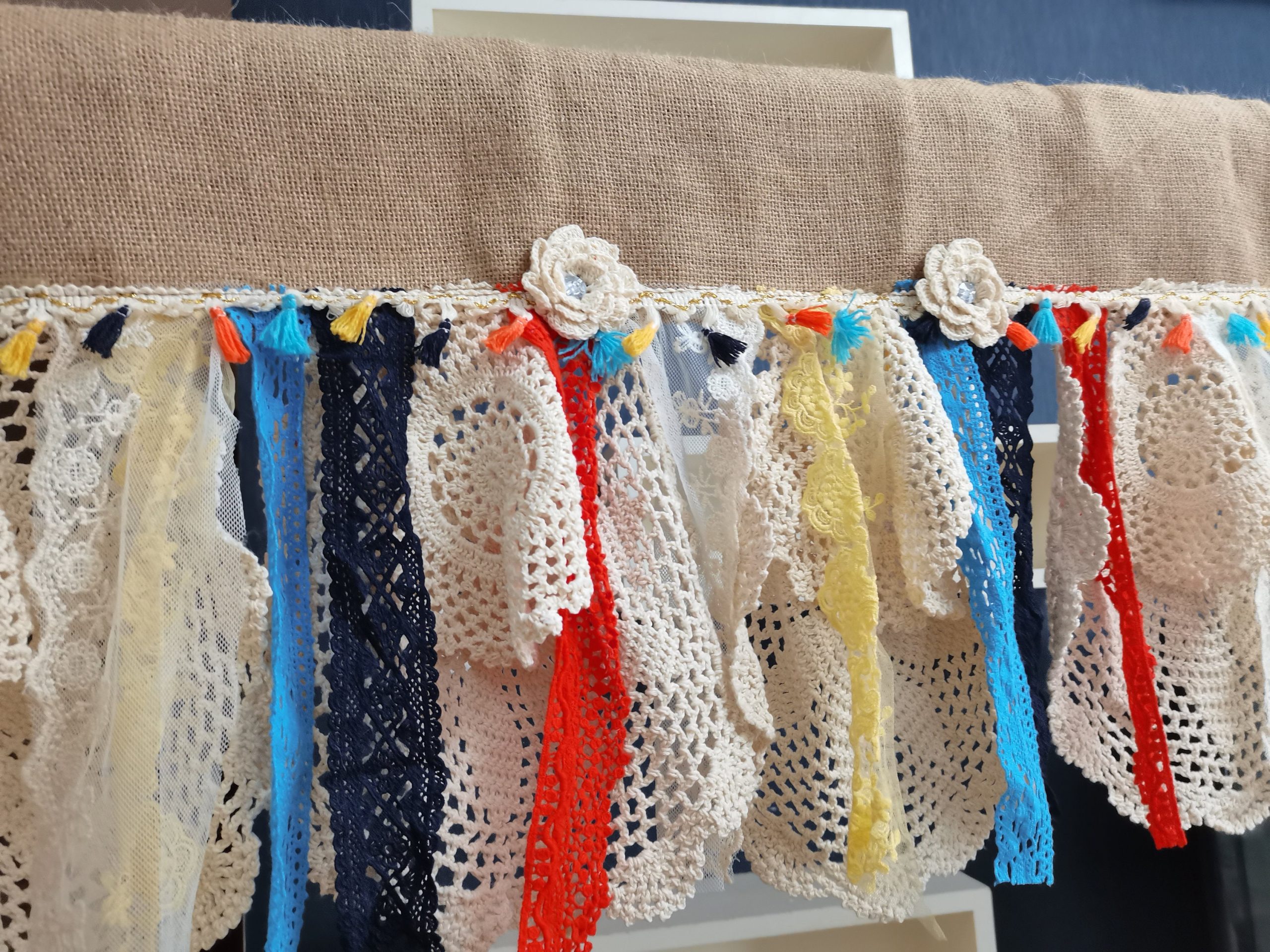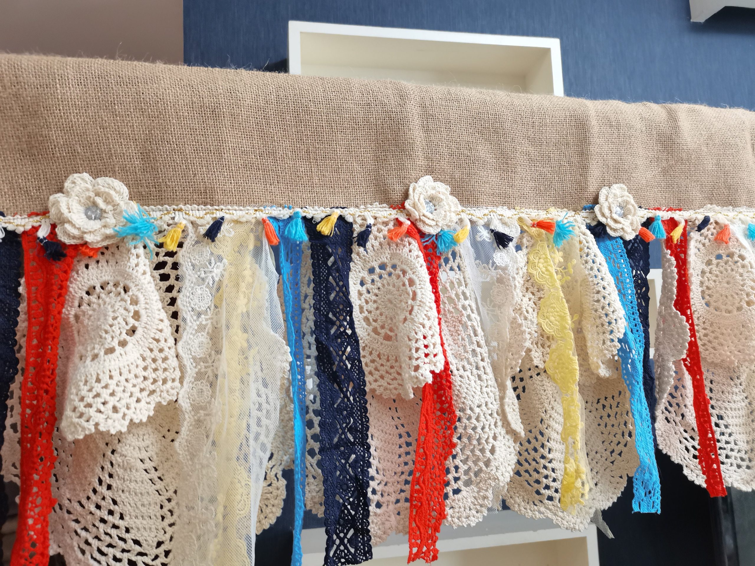 Romantic Kitchen Valance Burlap Lace Decoration Kitchen Curtains Shabby Lace Burlap Curtains Rustic Curtains Wedding Decorations